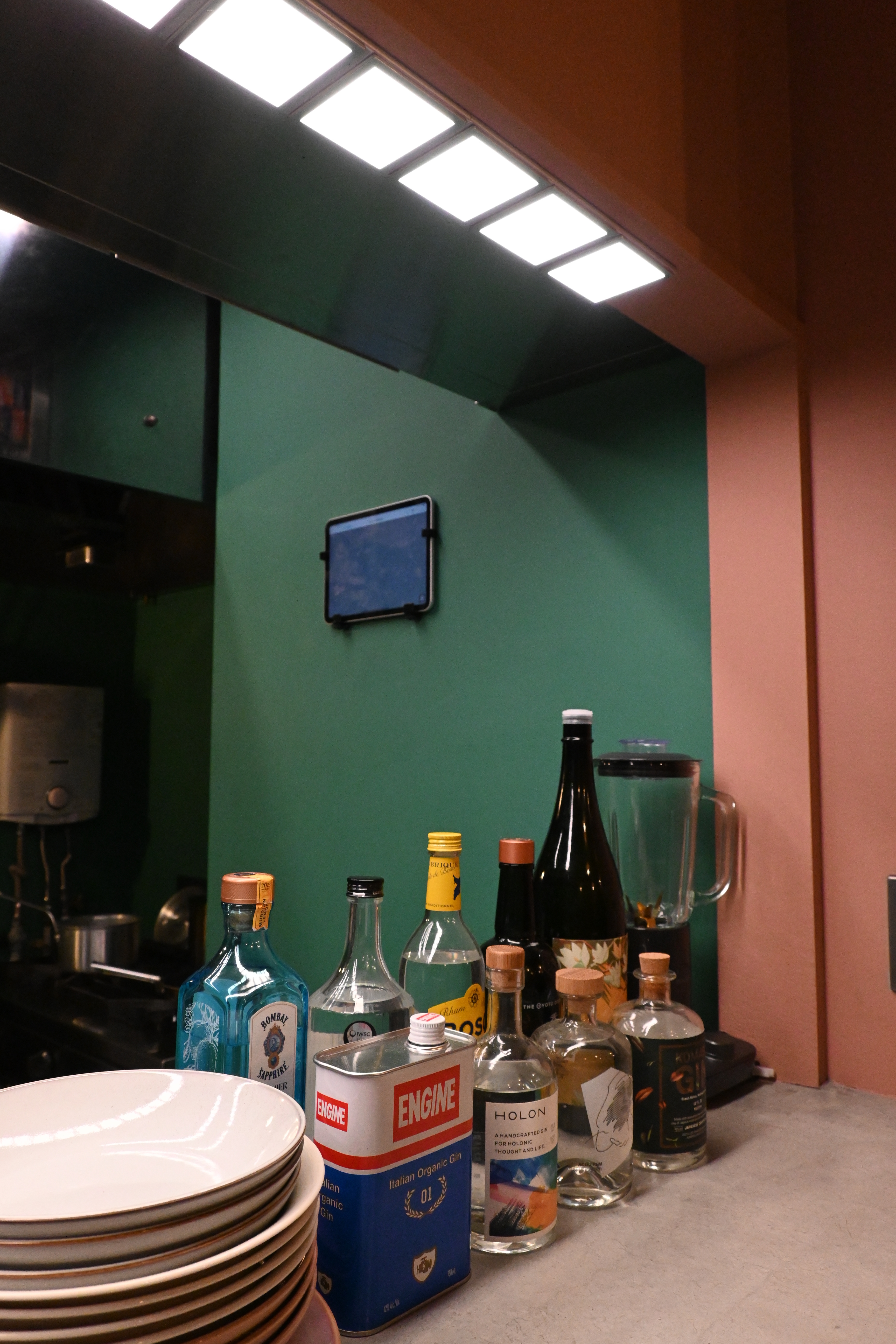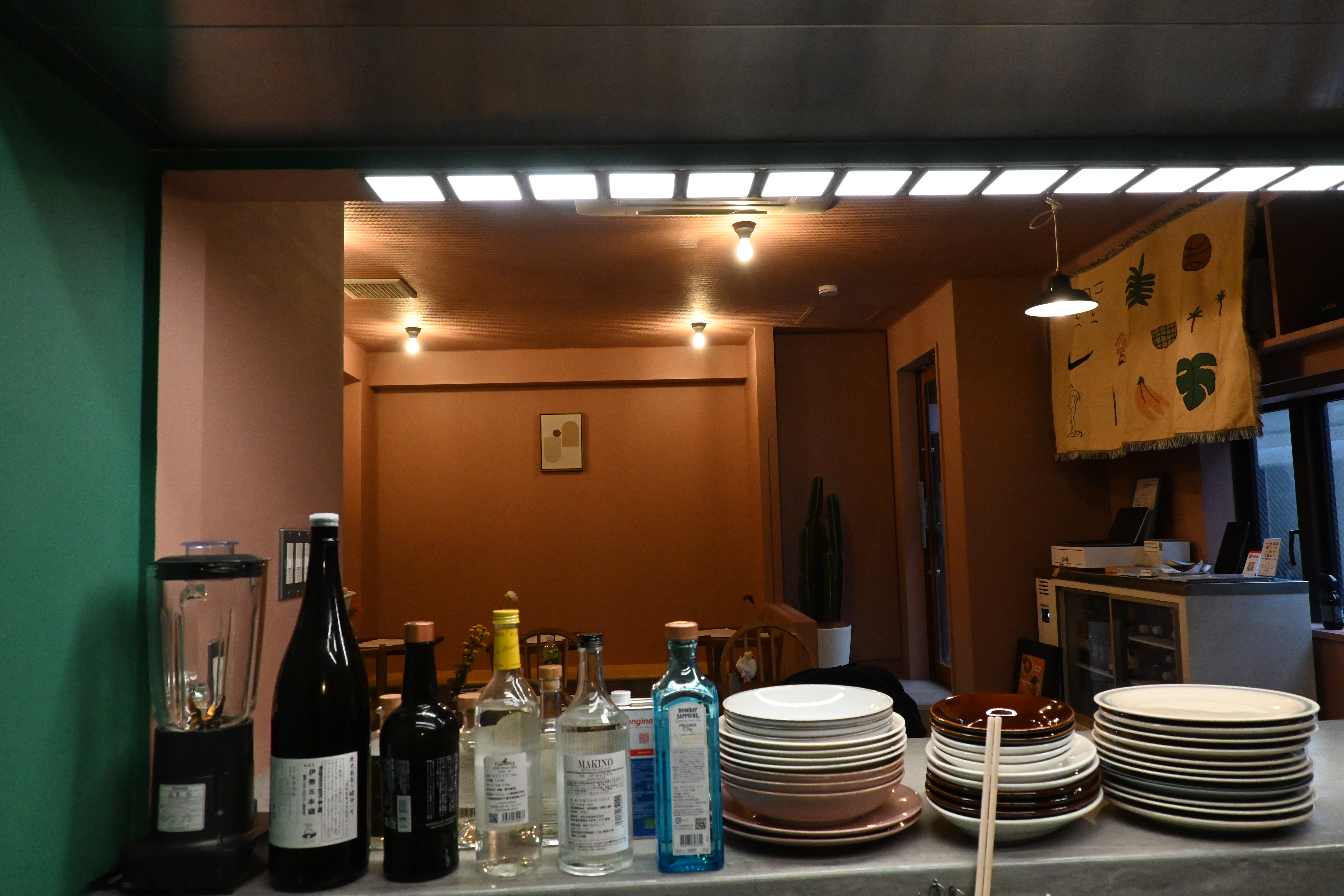 面発光のやわらかな光、自然光に近い高い演色性、影や反射を抑える低反射特性により、料理がより美味しそうに見えるだけでなく、壁紙の緑色も一層鮮やかに映えるようになりました。